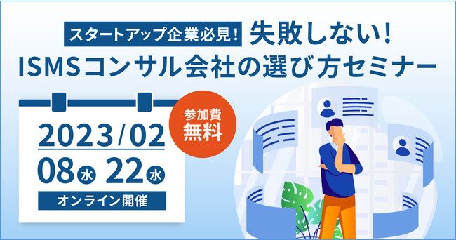 LRM株式会社(以下 LRM、本社:兵庫県神戸市、代表取締役CEO:幸松哲也)が、2023年2月8日(水)・22日(水)の2日程で、「スタートアップ企業必見!失敗しないISMSコンサル会社の選び方オンラインセミナー」を開催いたします。