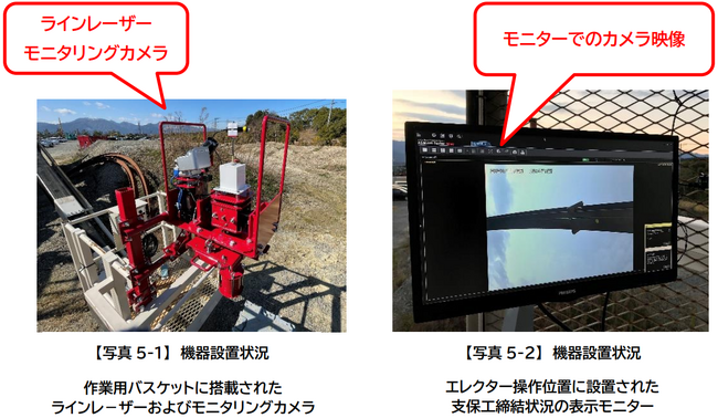 (3)支保工締結・レーザー照射状況をモニタリングカメラにより確認【写真5-1 参照】、【写真5-2 参照】