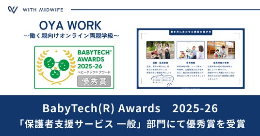 株式会社With Midwife(所在地:大阪府大阪市、代表取締役:岸畑 聖月)が運営する、働く親向けオンライン両親学級「OYA WORK」が、「BabyTech(R) Awards 2025-26」において、「保護者支援サービス 一般」部門で優秀賞を受賞したことをお知らせいたします。