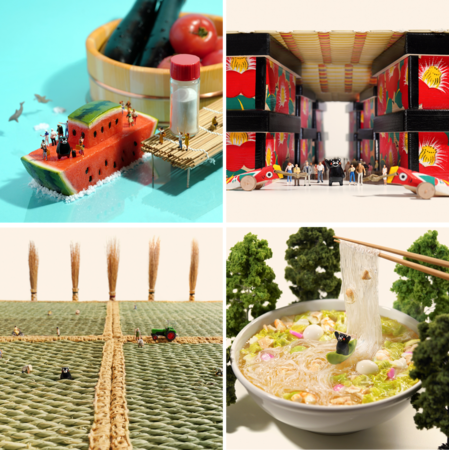 本企画は、平成28年熊本地震及び令和2年7月豪雨という2つの災害からの”創造的復興”に取り組んでいる熊本県の魅力発信を目的とした復興プロモーションです。今回の「ミニチュアくまもと旅するモン」では、熊本県出身であり、ミニチュア写真家・見立て作家として世界的に活躍する田中達也氏の協力のもと、熊本各地の美しい風景をミニチュアアートで再現しています。農産品や伝統工芸品など、県の特産品を風景に見立てて創作された作品では、熊本城や阿蘇地域といった熊本地震からの”創造的復興”を遂げた熊本の様子や、県内各地の魅力的な風景などをご覧いただけます。