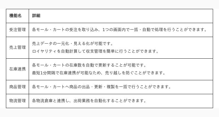 全てのネットショップの受注・売上・在庫・商品データを1つのシステム内で管理できるため、業務効率を格段にUPすることができます。