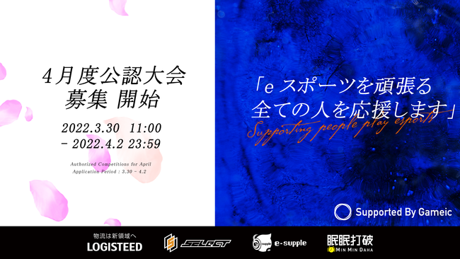 日本学生esports協会 / Gameic(代表:前川友吾、以下「Gameic」)は、審査を通過したeスポーツのコミュニティ大会(以下「公認大会」)に対して、協賛及び大会企画、運営、プロモーション、大会クリエイティブの作成サポートなどの包括的な大会支援をする「公認大会制度」の、4月大会の公募を開始いたします。