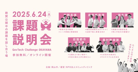 募集中の課題について、岡山市職員と直接話ができる、貴重な機会です!応募をご検討中の方は、ぜひご参加ください。