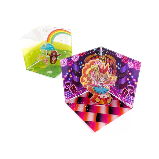 当店で作成いただいたアクリルフィギュア(アクスタ)専用の立体型アクリルステージは、アクスタの美しさを最大限に引き出すために設計された背景ジオラマです。