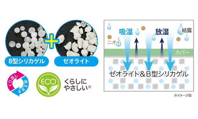 ゼオライト・B型シリカゲルのW効果で、カビの元になる湿気を吸いと~る!