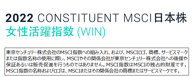 東京センチュリー株式会社(本社:東京都千代田区、社長:馬場 高一)はこのたび、性別多様性に優れた企業を対象に構築される「MSCI日本株女性活躍指数(WIN)」の構成銘柄に選定されましたので、お知らせいたします。今回の選定により、当社は、日本の公的年金を運用するGPIF(年金積立金管理運用独立行政法人)が採用するESG指数のうち、日本株を対象とした5つのESG指数(※1)すべての構成銘柄に選定されました。