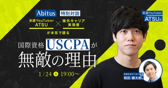 国際資格講座などを展開するパスメイクグループのアビタス(本社東京都渋谷区、代表宇坂純)は、USCPA(米国公認会計士)プログラムにおいて2024年1月24日(水)に、著名英語YouTuberとアビタス卒業生をゲストに招き無料のトークセッションを開催いたします。