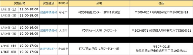 【岐阜県内の追加実施会場】