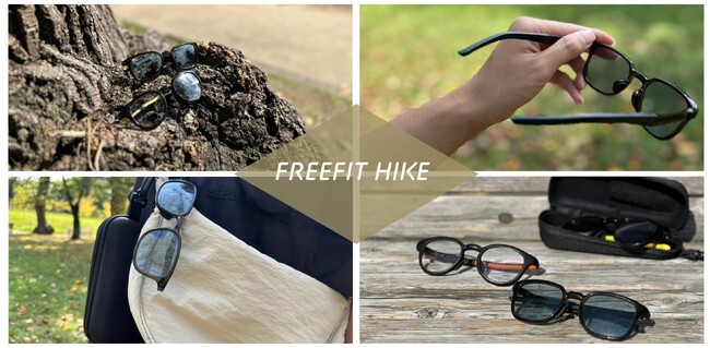2010年発売以降「軽い、ズレにくい、驚きのかけ心地。」のコンセプトのもと、480SKUものフレームを展開してきたFREE FiTは、『年齢・性別関係なく、ぴったりな商品が見つかるブランド』というテーマを掲げ2023年8月からリニューアルを開始。第1弾は、「FREE FiT=樹脂フレーム」という固定概念を払拭したメタルフレーム。第2弾は、0.01mm単位で試作を繰り返したメンズモデル。第3弾は、持続可能性に優れた素材を使用したユニバーサルモデル。そして第4弾の今回は、アウトドアやアーバンスポーツなど“日々をアクティブに過ごす方”に向けた「FREEFIT HIKE(フリーフィットハイク)」が新登場。FREE FiTの特長である軽くズレにくい機能性と、中太フレームやテレビジョンカットなどトレンドのデザインを採用することで、アクティブやビジネスなど様々なシーンでも掛け外しをせずに過ごすことができるモデルです。