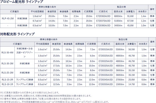 選べる2つの配光(プロビーム配光形、対称配光形)をラインアップしています。