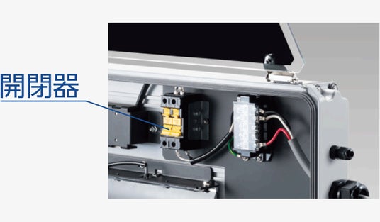- 開放保持機能:透光性カバーの開放保持機能を採用。カバーを開いたまま固定し、両手で結線作業やメンテナンス作業を簡単に行えます。