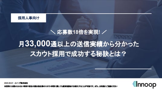 資料「応募数18倍を実現!月33,000通以上の送信実績から分かったスカウト採用で成功する秘訣とは?」