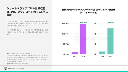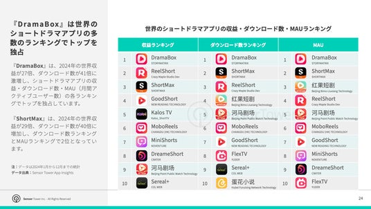 ショートドラマアプリは2024年に世界収益が15.1倍、ダウンロード数も9.6倍に激増