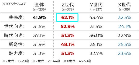 今回の見立てについて、QOが実施した検証調査*⁶では、特にZ世代からの評価が高く、共感度は62.1%でした。「時間と費用を投じることによって、手に入れた際や体験し終わった時の喜びや充足感がより大きいものになる」など、自由回答からも共感の声がみられました。
