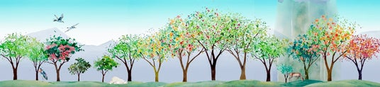 この“木のアート”は、壁に設置されたカメラがセンシングした笑顔と会話の量をもとに、生成AIが4分ごとに1本ずつ生成し、会議スペースの壁に設置された2台の大型サイネージにリアルタイムに表示されます。そして会議終了後には、会議中に表示された”木のアート“を連ねて、絵巻物のように“その会議の風景(会議の質)ˮを表示します。これにより、木々の成長や⾊彩からその会議を振り返ることができます。会議を感性で振り返る新しい会議ログの形です。