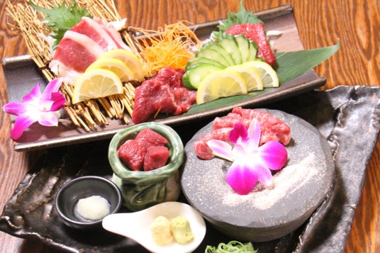 馬肉といえば、馬刺しを思い浮かべる方が多いかと思います。当店では鹿児島・佃牧場から直接仕入れた純国産馬刺しをご用意しております。ぜひ当店で馬肉の美味しさを知ってください。