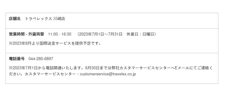 トラベレックスジャパン株式会社(東京都港区 代表取締役 大谷淳)は、2023年7月1日に「トラベレックス 川崎店」をオープンいたします。