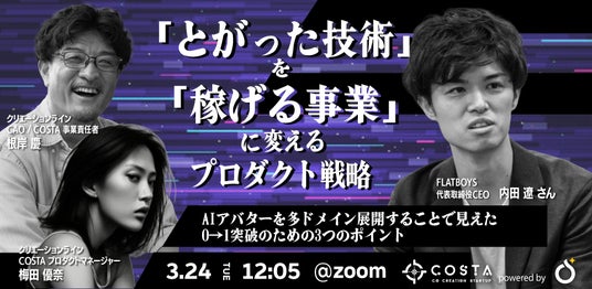 「FLATBOYS社の内田代表率いるチームの熱意と、彼らが生み出すAIアバターの可能性に強く惹かれ、今回の共創に至りました。FLATBOYS様の尖った技術と、当社のエンジニアリング力が組み合わさることで、社会に大きなインパクトを与えるサービスが生まれると確信しています。COSTAを通じて、彼らの挑戦を全力で支援してまいります。」