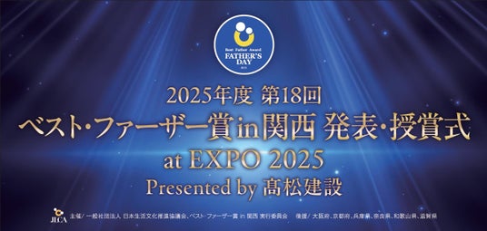 高松建設株式会社(本社:大阪府大阪市、代表取締役社長:高松孝年、以下当社)は、一般社団法人 日本生活文化推進協議会(JLCA)が主催する「2025年度 第18回ベスト・ファーザー賞in関西」に協賛いたします。本賞は、関西出身、または関西を中心に活躍している、家庭や地域社会において父親として模範となる方々を表彰するもので、今年は特別に「2025年大阪・関西万博」内で発表・授賞式が行われる予定です。