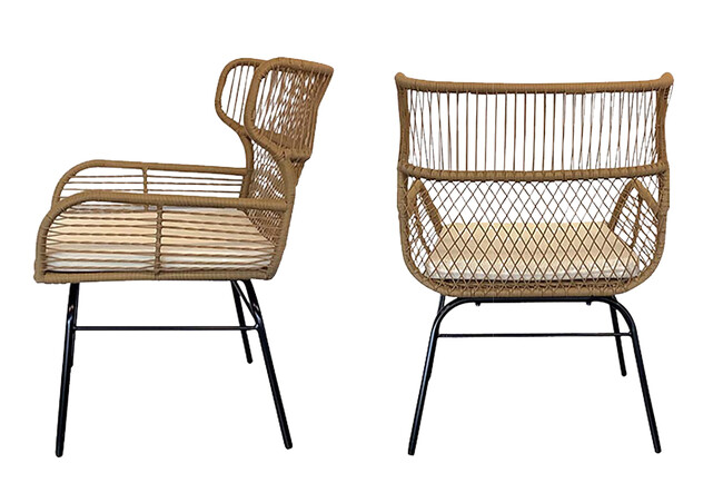 チェアの背もたれやアーム部分・テーブルの天板部分のラタンは、異なった編み方でつくられており、どこからみても美しく、それぞれのデザイン性の高さを感じることができます。 アジアンテイストのインテリアはもちろん、ラタンならではの優しい色味を活かした、ナチュラルカラーを基調としたコーディネートもおすすめです。全体的に淡い色味でつくられていますが、チェア・テーブルともにブラックスチールの脚がスタイリッシュさをプラスし、全体の印象がぼやけさせず、引き締めています。