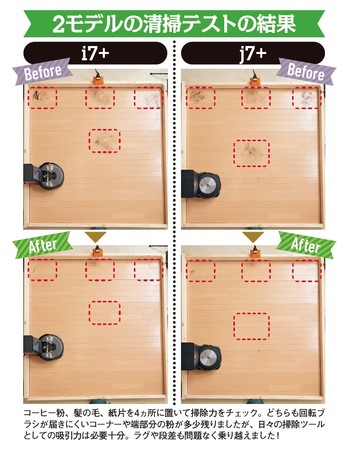 「ルンバ史上最高の賢さ」を謳うモデルj7+が新発売。新採用の『PrecisionVision ナビゲーション』による特定の障害物の検知&回避機能が最大のウリです。そこで今回は、過去ベストのi7+と本製品を従来のテスト方法に加え、特定の障害物に対する挙動もテストし、比較してみました。すると掃除力や、基本的な障害物に対する挙動はほぼ同じ。新機種はコード類などをしっかり回避できました。クリーンベースにゴミを吸い上げる音が大きいのは気になりましたが、ロボット掃除機の導入にハードルを感じていた人におすすめの一台です。