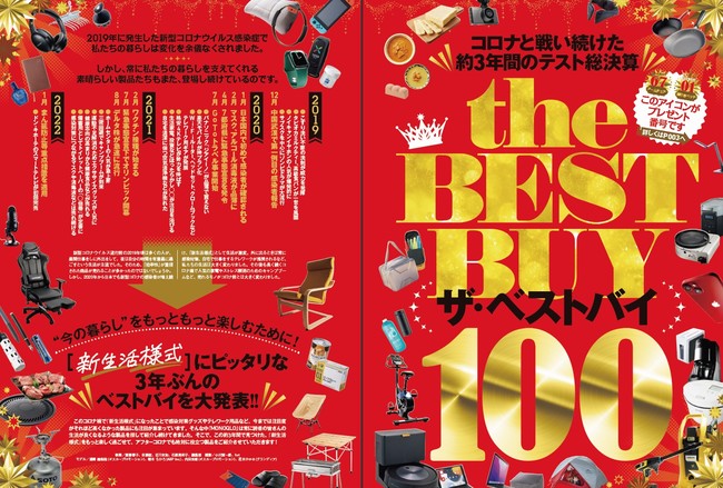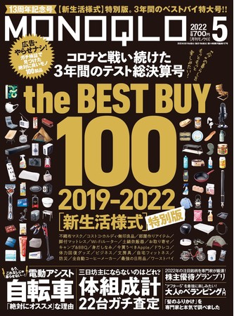 5月号は、3年間のベストバイ特大号!! キッチングッズやロボット掃除機、NCヘッドホンなど、2019-2022年にテストした中から見つけた絶対に良いモノ100製品をご紹介しています。 そのほかにも、プロイチオシの初心者向け電動アシスト自転車や、ダイエット・筋トレ・体調管理の最強パートナー「体組成計22選」など、“今”の暮らしをもっと楽しめる情報満載です。本リリースでは、編集部が“本当におすすめできる”製品の一部をご紹介します