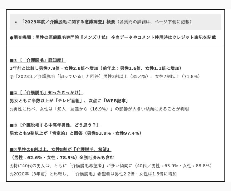 ■《「介護脱毛」概念誕生・命名から丸7年》中高年世代が脱毛する“理由の変化”とは? 40~50代の男女1140名へ【介護脱毛に関する意識調査】を実施 / 男性脱毛の広がりと背景をメンズリゼ総院長が解説