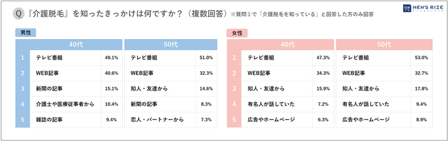 2.【「介護脱毛」知ったきっかけ】男女ともに半数以上が「テレビ番組」、次点に「WEB記事」