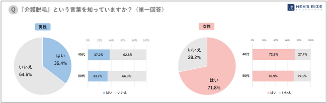 ◎【2023年/介護脱毛「知っている」と回答】男性3割以上(35.4%)、女性7割以上(71.8%)