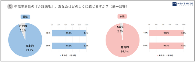3.【介護脱毛する中高年男性、どう思う?】男女とも9割以上「肯定的」と回答(男性93.9%・女性97.4%)