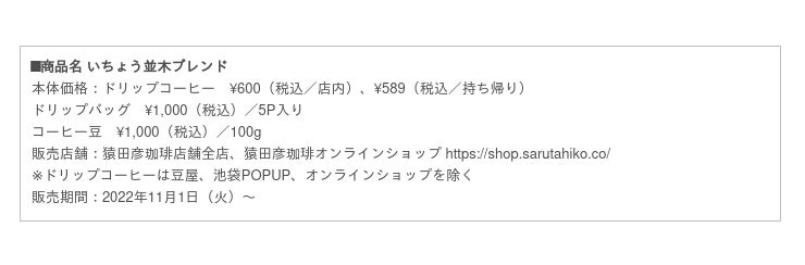 ■シーズン限定「いちょう並木ブレンド」