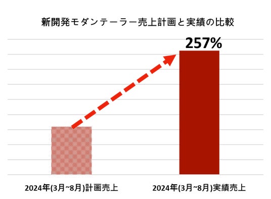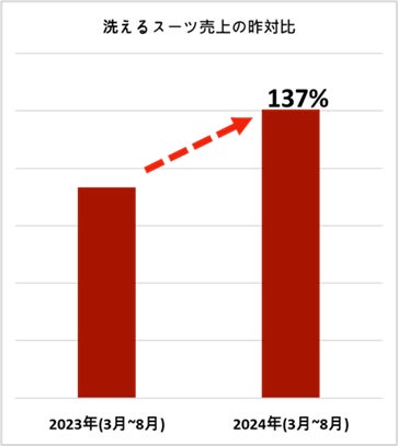 特に、新商品「モダンテーラー」は、クラシックスーツの見た目でありながら、自宅の洗濯機で洗えることに加え、通気性と伸縮性に優れた素材を使用しており、夏場の猛暑にも対応できる軽やかな着心地を提供。フォーマルなスタイルにも対応できるなど今年の異常気象に順応することを可能にし、売上計画を257%と大幅に上回りました。