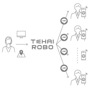2."テハイ"ロボからLINE連携で依頼を一斉通知(GPS情報をもとに現在位置を可視化)