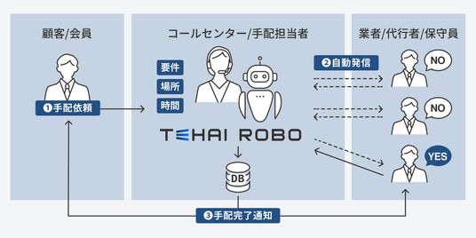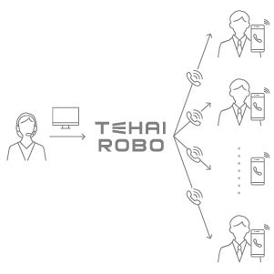 「"テハイ"ロボ」は、ジーエルシーが提供する、業者手配に関わる「架電・FAX」業務を自動化するためのクラウドシステムです。当初は、オペレーターの方々が、ひたすら業者手配の電話を行っているコンタクトセンターの架電業務自動化を念頭に開発されたシステムでしたが、現在は、それ以外の業務領域においてもご活用いただいております。
