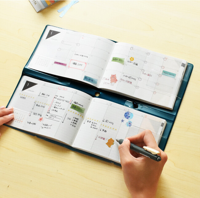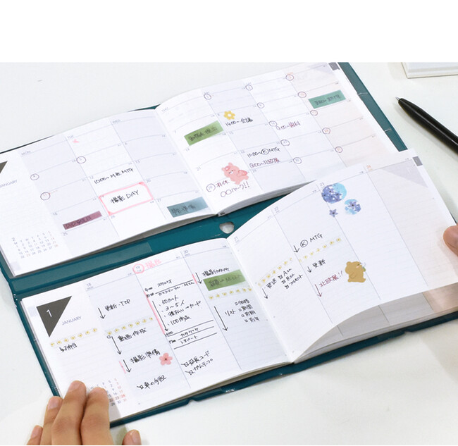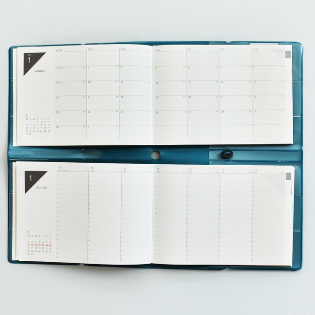 月間の予定と1週間の予定を同時に見る事ができる手帳です。