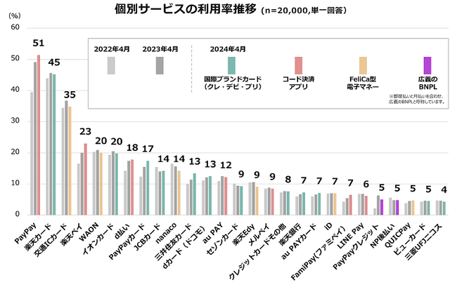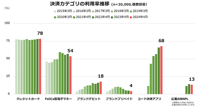 コード決済の利用率は過去最高値68%の一方、利用率を減少させる個別サービスも