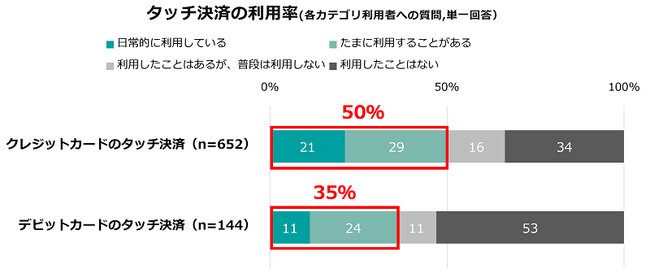 クレジットカード利用者の半数はタッチ決済を日常的に利用