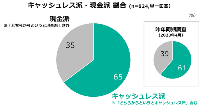 「キャッシュレス派」自認は65%、39%は現金利用の減少を申告