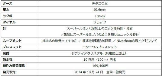 80時間のパワーリザーブと25石のH-10自動巻きムーブメントで駆動するこの時計は、耐磁性、温度変化、耐衝撃性に優れたNivachron(TM)製ヒゲゼンマイを採用しています。