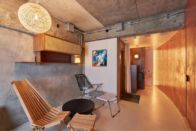 大橋会館の内外で生まれるつながりをより親密なものにするプライベートサウナ「サウナ大橋会館」(サウナオオハシカイカン)。池尻大橋のストリートバー「LOBBY」を手がけるデザイン会社&Supplyが立ち上げに関わり、また、BGMは三軒茶屋のCDレコードショップを手がけるKankyo Recordsが担当するなど、池尻大橋のローカルクリエイターたちによるコラボレーションを体験できる空間に仕上がりました。