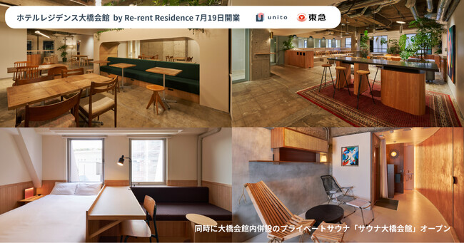 株式会社Unito(本社:東京都千代田区、代表取締役:近藤佑太朗、以下「ユニット」)は、この度、東急株式会社(以下東急)とユニットの協同事業である「ホテルレジデンス大橋会館 by Re-rent Residence」(以下、本物件)全61室を明日7月19日(水)に開業します。また同日に大橋会館内併設のプライベートサウナ「サウナ大橋会館」をオープンし運営を開始します。
