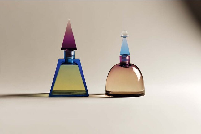 ジェームズ・タレルは、2つのフレグランスボトルをデザインすることからコラボレーションを開始しました。彼はエジプトとアジアに見られるストゥーパの形に魅了され、それらの建築構造と光が重要な役割を果たす精神性の高いモニュメントをインスピレーションとして用いました。