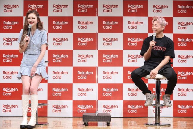 本カードの発行開始にあたり、1月16日(月)に「楽天カード 新デザインカード発表記者会見」を開催しました。当日は、楽天カード株式会社からの挨拶や武尊選手ご本人による「楽天カード 武尊デザイン」のお披露目に加え、武尊選手とモデル・タレントのゆうちゃみさんとのトークセッションやポイントゲットチャレンジ企画などが行われました。