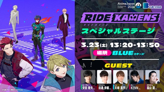 3月23日(土)・24日(日)に東京ビッグサイトにて開催予定の「AnimeJapan 2024」にて、『ライドカメンズ』のブース出展とスペシャルステージ開催が決定。本イベントで明らかになる新情報の発表や、様々なノベルティの配布を予定しています。