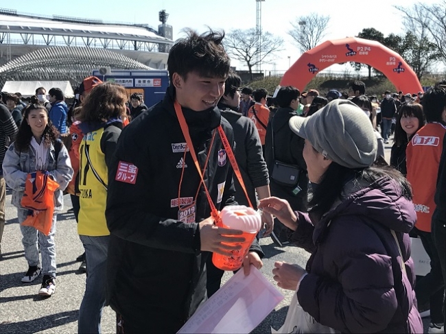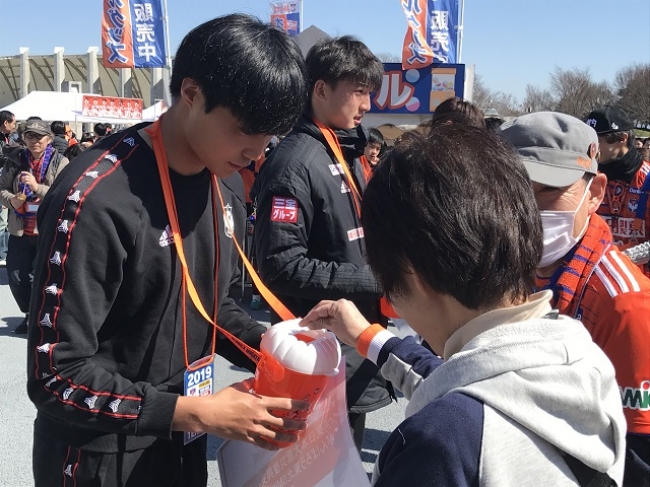 デンカビッグスワンスタジアムなお、当日12:40~13:00まで、チョ ヨンチョル選手、岡本將成選手、藤田和輝選手がEゲート前広場で募金活動に参加いたしました。