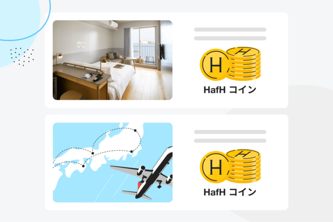 HafHコインとは、旅のサブスク(R)「HafH」のサービス内で使用する、宿泊施設や航空券の予約に必要なコインです。