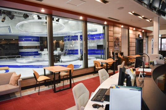 物語の舞台となる民放テレビ局JBNの報道番組『ニュースゲート』の報道フロアに、KANADEMONOのデスクやチェアを多数導入いただきました。