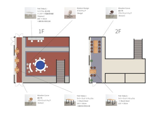 さらに2階フロアにも、THE TABLEとチェアの組み合わせを導入。報道スタッフやキャスター同士がミーティングスペースとして活用できるような、オープンで居心地のよい空間となっています。