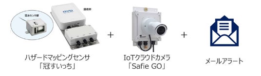 「リアルタイムハザード」は、センシングデバイスを活用して浸水発生や状況を即時に捉えるサービスです。東京海上日動火災保険株式会社(取締役社長:城田 宏明、以下「東京海上日動」)が発起人を務める「防災コンソーシアムCORE」(以下「CORE」)*1の分科会の取り組みで開発されました。セーフィー株式会社(代表取締役社長CEO:佐渡島 隆平)の提供するLTE搭載クラウドカメラ「Safie GO(セーフィー ゴー)」とCOREの創立メンバーである当社の提供するハザードマッピングセンサ「冠すいっち」の組み合わせとなります。