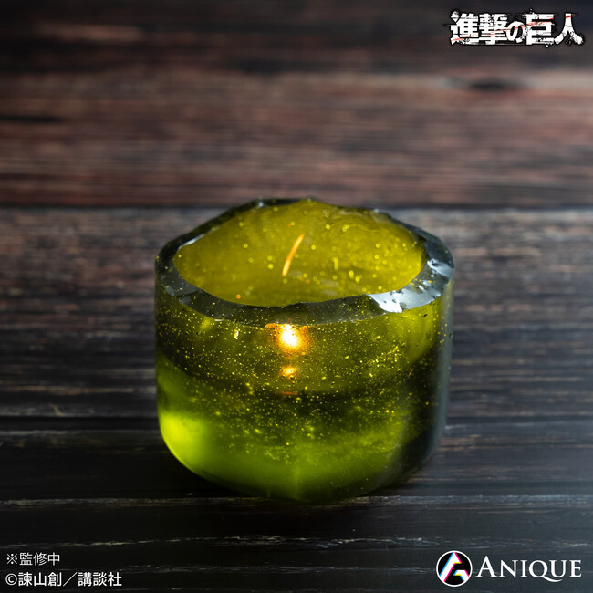 透明感があり、暗闇で灯すと幻想的な光を放つリヴァイをイメージしたキャンドル。